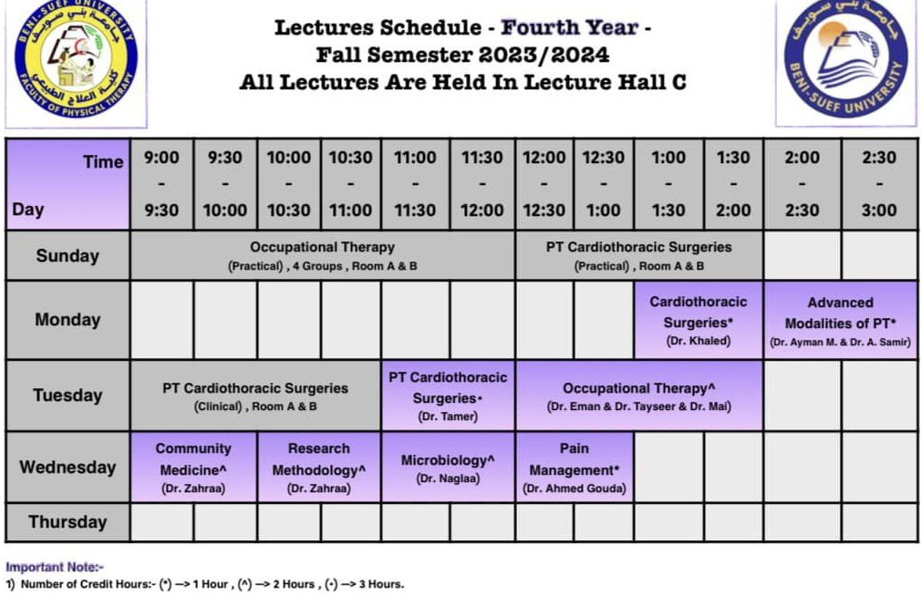 جدول محاضرات المستوي الرابع 2023 - 2024